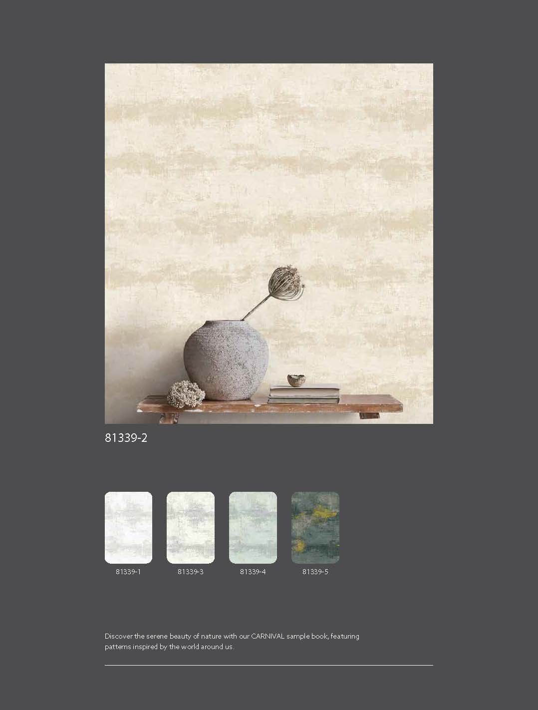 The Carnival Collection is ideal for those who appreciate natural aesthetics blended with modern luxury. Each wallpaper is produced with eco-conscious materials, offering a tactile silk-like finish that’s both visually rich and environmentally mindful.
