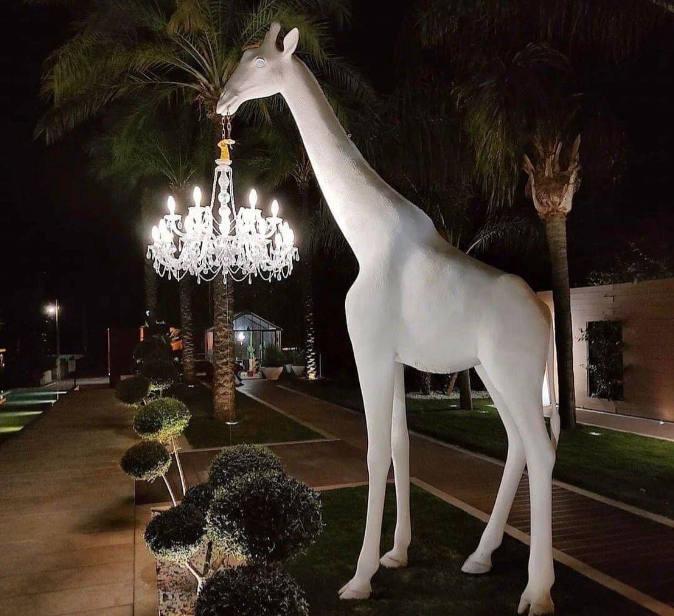 The Savanna Giraffe Chandelier Sculpture redefines decorative lighting through bold artistic expression. Featuring a life-sized giraffe form gracefully holding an illuminated chandelier, this piece blends sculpture, lighting, and storytelling into a single visual experience.
